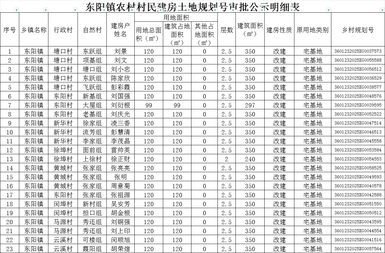 东阳镇农村村民建房乡村建设规划许可明细公示