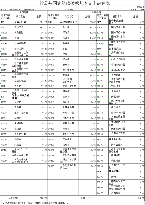 第二部分 2020年度部门决算表