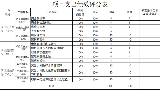 组织对“安义县促进工业经济高质量十条措施”、“2018年南昌市企业研发经费补助项目资金”“南昌国泰工业产业投资发展有限公司标准厂房建设项目补助资金”“中国建科院门窗幕墙安义检测中心试验室设备购置费用”等25个项目开展了部门评价,涉及一般公共预算支出6969.24万元。从评价情况来看,全年部门项目预算预计执行情况:截止2020年12月31日年度部门项目预算执行完成,本单位25个项目全部按照省、市、县有关文件精神,进一步完善制度,规范审批程序,手续完备,档案管理规范。在项目资金发放工作中,建立了符合财务会计制度的项目经费资金管理制度,专项管理、拨付规范、发放及时。各项绩效目标全部按期完成,自评得分为100分。