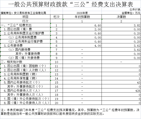 (二)公务接待费支出年初预算数为4万元,决算数为3.62万元,完成预算的91%,决算数较2019年减少0.8万元,下降18%,主要原因是受疫情影响来我单位调研学习的团体有所减少。决算数较年初预算数减少的主要原因是:疫情期间未进行公务接待。全年国内公务接待43批,累计接待426人次,主要为:省市工信、科技部门、市大数据部门领导调研、大数据对接的科技企业、市企业联合会、各乡镇、企业。