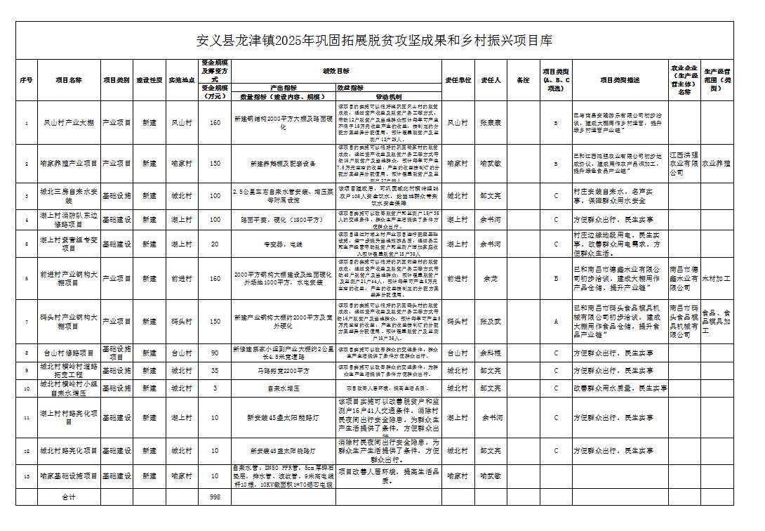 安义县龙津镇2025年巩固拓展脱贫攻坚成果和乡村振兴项目情况