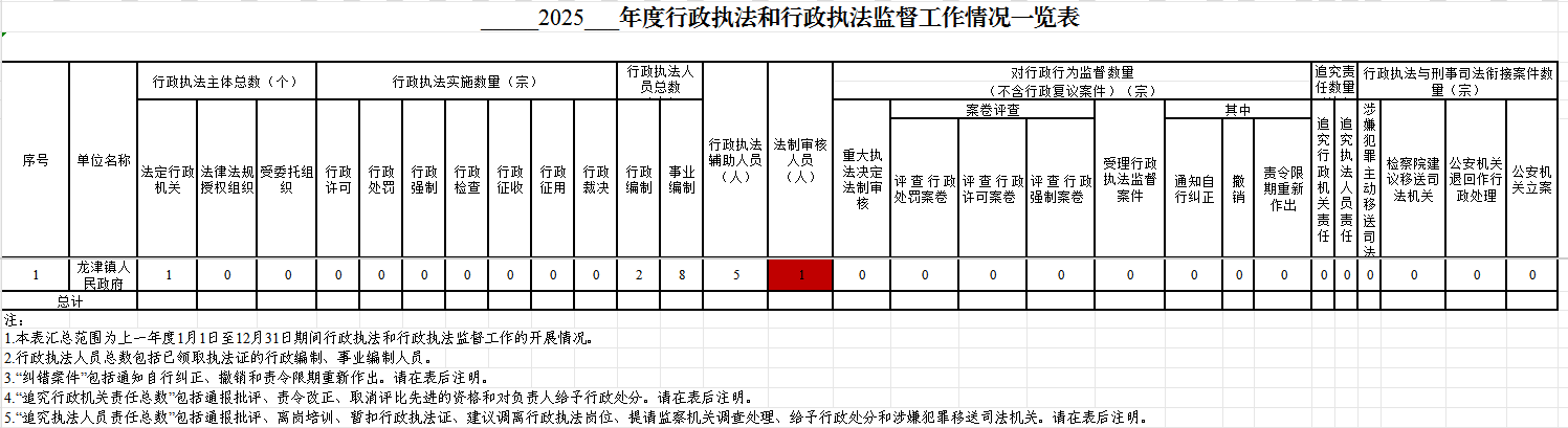 2025年度行政执法和行政执法监督工作情况一览表