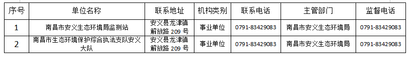 安义县生态环境保护领域公共事业单位信息公开适用主体清单(2025)