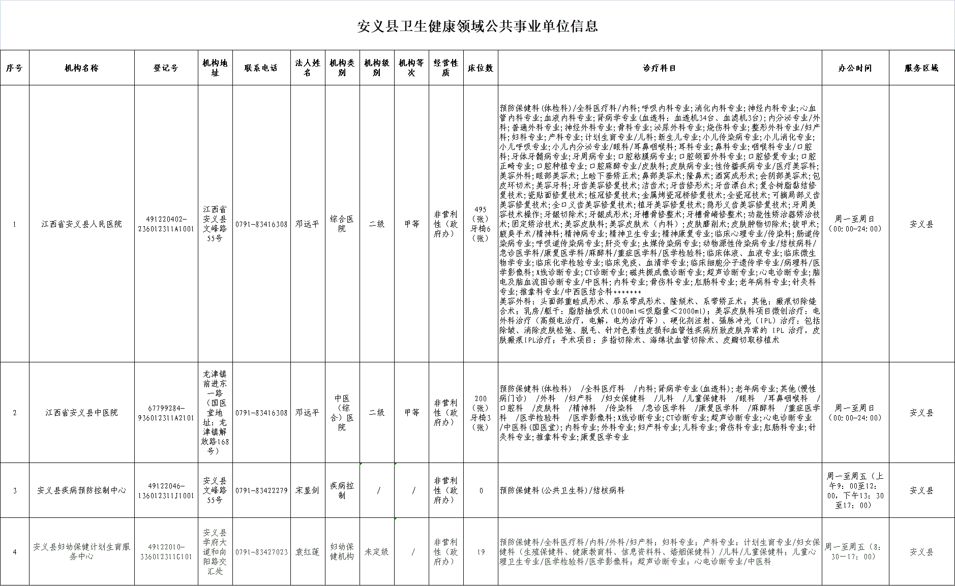 安义县卫生健康领域公共事业单位信息公开适用主体清单