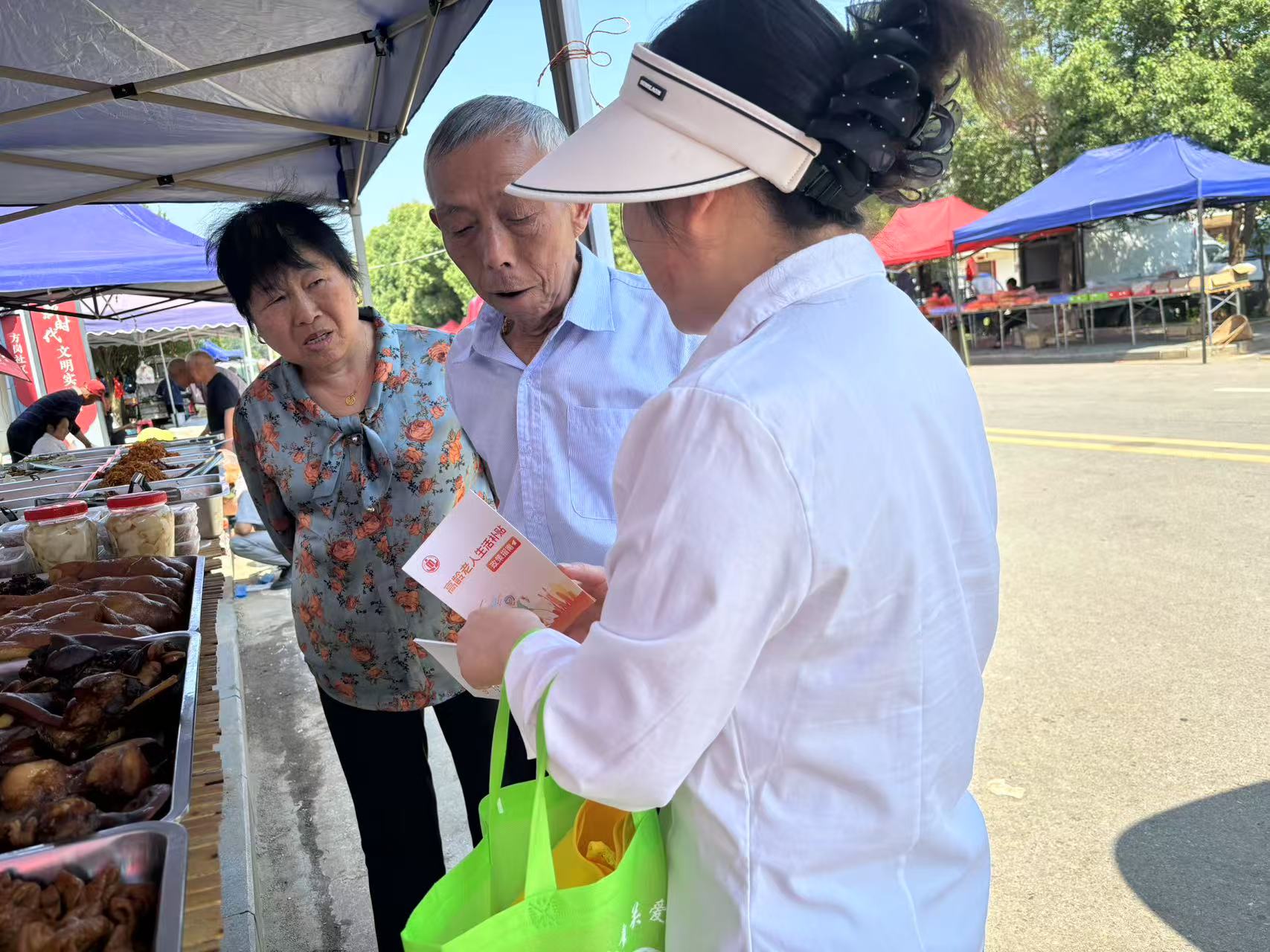 恰逢赶集之日,工作人员为群众发放宣传折页,并讲解高龄老人生活补贴政策的相关内容,包括补贴的申请条件、补贴标准等,尤其针对线上申请流程,工作人员通过赣服通一步步给群众演示,让他们能够更直观地了解如何帮助家里的老人自主申请。同时,针对群众提出的疑问,工作人员耐心解答,确保大家对政策理解透彻。
