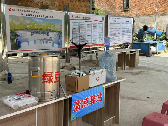 清凉驿站的开设,是公司党支部第四党小组根据夏季施工人员易中暑的防范要点,牵头在场内工地边设立了“清凉驿站”,让烈日下的施工人员能在此休息片刻,喝口绿豆汤解解乏,暂避当头的烈日,舒缓身体的疲惫,养精蓄锐错时施工,避过日头再上施工现场。驿站运营持续直至夏季结束,为施工人员提供休息场地、饮品和防暑药品。