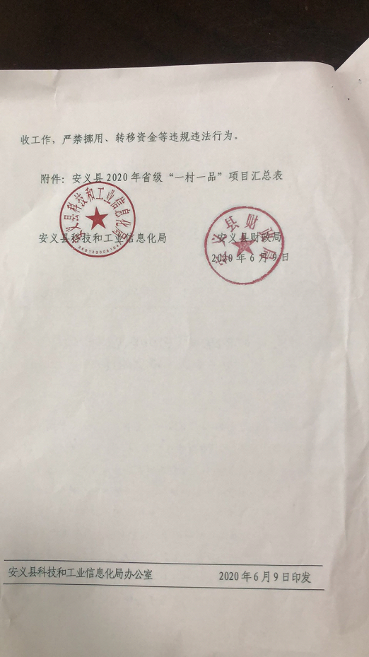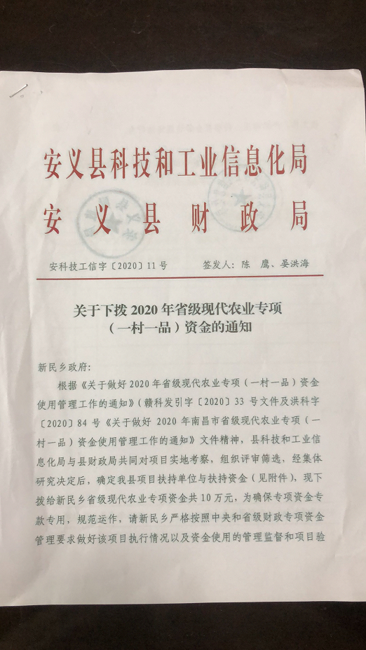 关于下拨2020年省级现代农业专项(村一品)资金的通知