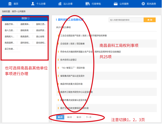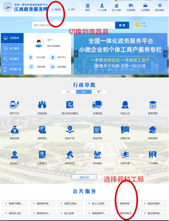 3.在县区界面的公共服务栏目,找到南昌县科技和工业信息化局,点击进入