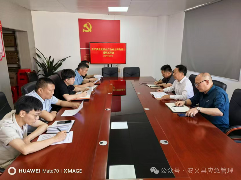 为深入贯彻落实《江西省2025年化工和危险化学品安全监管工作要点》及省、市关于危险化学品安全生产工作的系列决策部署,进一步压实企业安全生产主体责任,提升主要负责人“第一责任人”意识和履职能力,推动全县危化品领域安全形势持续稳定向好,安义县应急管理局于2025年5月30日上午组织开展了全县危化品生产企业主要负责人向县应急管理局述职工作会。全县5家危化品生产企业的主要负责人进行现场书面述职,限时发言。从主动履行法律法规规定的各项安全生产职责,建立健全并落实全员安全生产责任制,加强安全生产标准化建设,组织制定并实施安全生产规章制度、操作规程、教育和培训计划、事故应急救援预案,保证安全生产投入的有效实施,组织建立并落实双重预防工作机制,及时、如实报告生产安全事故情况。经验做法、取得的成效及存在的问题和不足等方面阐述了2024年以来本企业所做的安全生产工作以及下一步的打算。会上,县应急管理局对5家企业进行了逐一点评,最后刘凤生强调:本次危化品生产企业主要负责人述职工作,是安义县强化企业主体责任落实、创新安全监管方式的有力实践。各企业要以此次活动为契机,企业主要负责人要切实担起安全生产“第一责任人”重担,全面提升全县危化品安全生产治理体系和治理能力现代化水平,为安义县经济社会高质量发展营造更加安全稳定的环境。