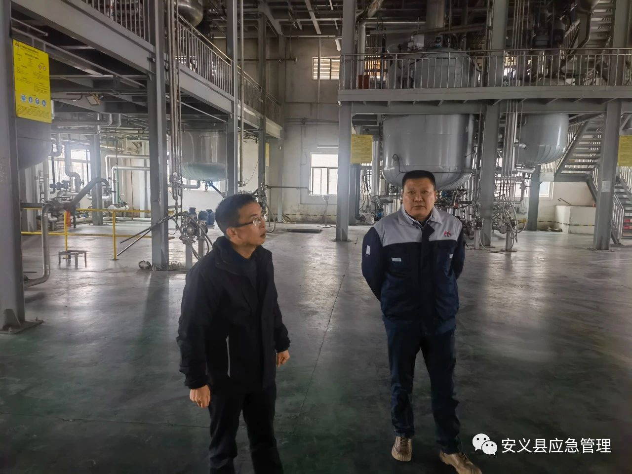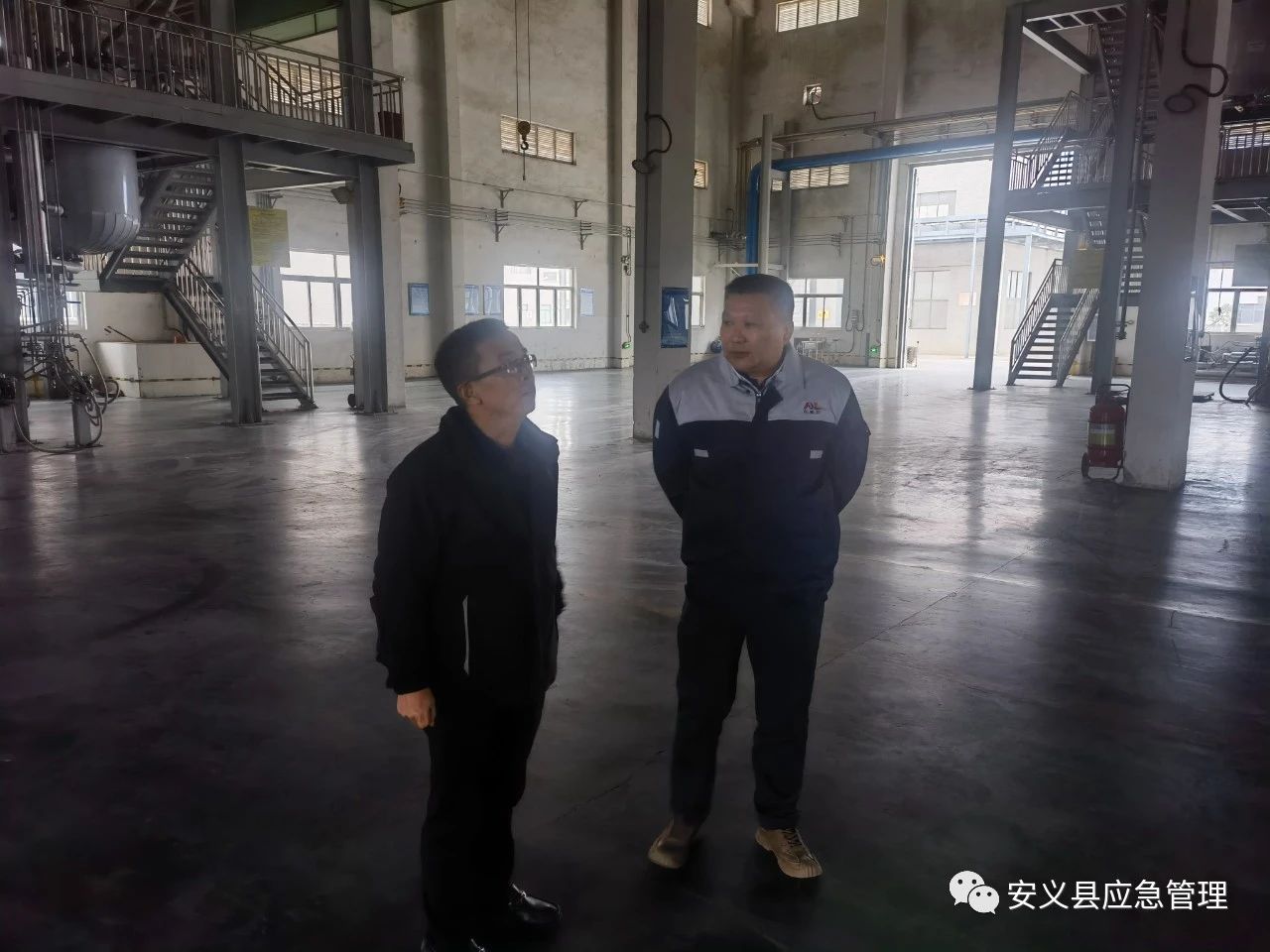 县安委办和县危险物品行专委会在江西安德力高新科技有限公司对风险隐患排查、甲类仓库危化品物质、现场设计与现场是否一致、风险分级分类管控以及应急演练情况等进行督导,要求结合重大安全事故隐患排查整治行动,对危化品企业安全隐患进行全面彻底的排查整治,确保岁末年初危化品领域安全稳定。
